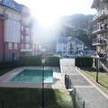 At the foot of the majestic Mont Blanc, this charming apartment in the Grand Panorama residence offers a serene retreat just 50 meters from the Saint-Gervais cable car, granting direct access to the renowned Evasion Mont-Blanc ski area. With its southwest-facing balcony, guests can bask in the golden alpine sun while enjoying breathtaking views of the surrounding peaks. Whether you're seeking winter thrills or summer relaxation, this property is the perfect base for your mountain adventures. \n\nDesigned to accommodate up to six guests, the apartment features a cozy living room with a sofa bed, a well-equipped kitchen, a bedroom with a double bed, and a cabin with bunk beds. The thoughtful layout includes a bathroom with a bathtub, a shower room, and a separate toilet, ensuring comfort and convenience for families or groups of friends. Additional amenities such as a ski locker, garage, and pet-friendly policies make this residence ideal for extended stays. In summer, unwind by the heated outdoor pool, open from June to September, and savor the tranquility of the alpine landscape. \n\nSaint-Gervais village, located just 800 meters away, offers a delightful array of bakeries, shops, and restaurants, perfect for exploring local flavors and culture. Outdoor enthusiasts will appreciate the proximity to hiking trails, cycling routes, and panoramic viewpoints, while winter visitors can indulge in world-class skiing and snowboarding. For added convenience, optional services like linen rental, baby equipment, and Wi-Fi hotspot rental are available, ensuring a seamless vacation experience. \n\nWhether you're drawn by the allure of Mont Blanc or the charm of Saint-Gervais, this apartment promises unforgettable moments in the heart of the French Alps. Create lasting memories in a setting that combines natural beauty, modern comfort, and authentic alpine hospitality.