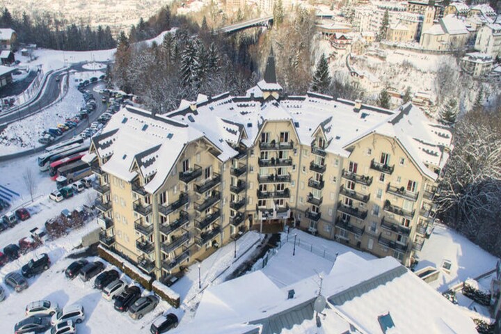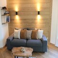 With the majestic Mont Blanc as your backdrop, this charming apartment in the Grand Panorama residence offers an idyllic alpine retreat in Saint-Gervais. Just 50 meters from the Saint-Gervais cable car, you’ll have seamless access to the expansive Evasion Mont-Blanc ski area, perfect for winter sports enthusiasts. In summer, the heated outdoor pool invites you to relax under the mountain sun, creating a haven for year-round adventures. The residence’s proximity to the village center, just 800 meters away, means you’re never far from local bakeries, shops, and restaurants, blending convenience with tranquility. \n\nThis thoughtfully designed 44 m² apartment comfortably accommodates up to six guests, making it ideal for families or groups of friends. Located on the 4th floor, it features two north-facing balconies that provide serene views of the surrounding peaks. Inside, the living room boasts a cozy sofa bed, a television, and a dining area, while the fully equipped kitchen includes modern appliances such as a ceramic hob, microwave, dishwasher, and even a fondue set for authentic alpine evenings. The sleeping arrangements include a bedroom with two single beds, a cabin with bunk beds, and additional sleeping space in the living room. Two bathrooms, one with a bathtub and the other with a shower, ensure comfort for all guests. \n\nThe property also offers practical amenities such as a garage, ski locker, and optional services like Wi-Fi and linen rentals. Whether you’re skiing down pristine slopes, hiking scenic trails, or simply enjoying the charm of Saint-Gervais, this apartment provides the perfect base for unforgettable mountain memories. With its blend of comfort, convenience, and breathtaking surroundings, it’s a destination that invites you to experience the best of the French Alps.