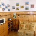 - Kitchenette with 2 ceramic hobs, refrigerator, and microwave.