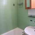 - Bathroom with bathtub, sink, and heated towel rail.