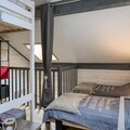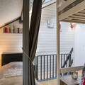 Designed to accommodate 4 adults and 2 children, the 48 m² apartment features a thoughtfully arranged layout across three levels. The main floor boasts an open-plan kitchen, dining, and living area with a television, a separate toilet, and a balcony where you can savor the crisp mountain air. The first mezzanine includes a double bedroom, two single beds, a bunk bed, and a bathroom with a shower and toilet. The second mezzanine provides an additional single bed, ensuring ample space for everyone. Practical amenities such as Wi-Fi, a ski locker, and a garage for a small car enhance your stay.