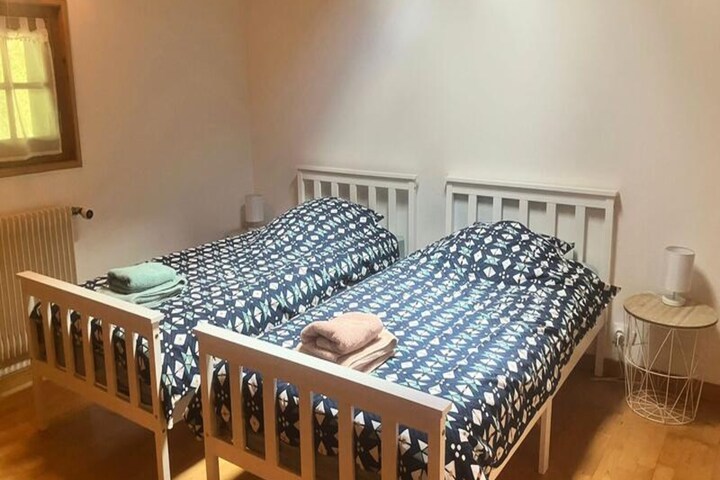 Set amidst the serene beauty of Saint-Gervais, this charming chalet apartment offers a peaceful retreat with breathtaking views of Mont Joly, the Aravis mountain range, and the picturesque village below. Perfect for families or small groups, this cozy haven is located just 2.5 km from the ski slopes and 1.5 km from the village center, making it an ideal base for exploring the region’s alpine wonders. A shuttle stop is conveniently located 1 km away, ensuring easy access to all the local attractions. In winter, snow equipment is essential for reaching this tranquil spot nestled in the upper part of the village. \n\nThe apartment spans 70 m² and is thoughtfully designed to accommodate up to four guests. Situated on the second floor, it features a west-facing balcony where you can unwind and soak in the stunning mountain vistas. The living room is warm and inviting, complete with a wood-burning stove, a comfortable sofa, a television, and a dining area that opens onto the balcony. The fully equipped kitchen is a delight for culinary enthusiasts, offering modern appliances such as an induction hob, oven, microwave, refrigerator, dishwasher, and even a raclette grill and fondue set for authentic alpine dining experiences. \n\nThe sleeping arrangements include a double bedroom and a twin bedroom, both furnished with cozy bedding to ensure restful nights. The bathroom is equipped with a shower and sink, while a separate WC adds convenience. Additional amenities include an outdoor parking space, ski and boot storage, and complimentary firewood for the stove. Bed linen and towels are provided, ensuring a hassle-free stay. Optional services such as Wi-Fi and baby equipment rentals are available upon request. \n\nWhether you’re here to ski, hike, or simply relax, this apartment offers the perfect blend of comfort and location. With its panoramic views and proximity to Saint-Gervais’ charming village center, it’s a delightful choice for your next alpine getaway.