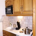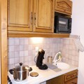 The apartment is equipped with a fully functional kitchen, including 4 electric hotplates, a refrigerator, and a mini-oven, perfect for preparing meals during your stay. The bathroom includes a shower and vanity unit, while a separate WC adds extra convenience. Additional services such as WiFi box rental, linen, and childcare equipment are available on request, ensuring a comfortable and personalized experience.