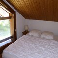 This 2nd-floor apartment offers a west-facing balcony. It includes a living room with a sofa bed, television, and dining area; a kitchen equipped with ceramic hobs, a mini-oven, dishwasher, and refrigerator; two bedrooms; a bathroom with a shower and sink; and a separate WC. Pillows, duvets, and dishes are provided, but household products are not. Optional services (with supplement, subject to reservation and availability) include Wi-Fi box rental, household linen rental (sheets and towels), childcare equipment rental (high chair and travel cot), and end-of-stay cleaning. Heating is included.