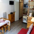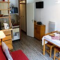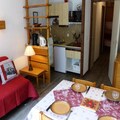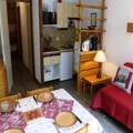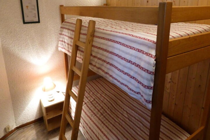 This 29m² ground-floor studio apartment in Les Contamines-Montjoie comfortably accommodates up to five guests. It features a sofa bed (140x190cm) in the living room, bunk beds in the sleeping area, and a pull-out bed (90x190cm). Pets are allowed. The studio benefits from an east-facing balcony.