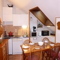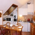 The apartment includes a well-equipped kitchen area with induction hobs, a mini-oven, a refrigerator, a dishwasher, and a microwave, making meal preparation a breeze. The bathroom features a bathtub and vanity unit, with an additional separate WC and sink for added convenience. Optional services, including Wi-Fi, linens, childcare equipment, and end-of-stay cleaning, are available to enhance your stay. Pillows, duvets, and kitchenware are provided for a comfortable and seamless mountain getaway.