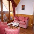 This charming three-room apartment offers a delightful retreat for up to five guests, making it ideal for families or groups of friends. Located on the third floor, the apartment features a spacious living room with a comfortable armchair-bed, a bright dining area, and a south-west-facing balcony for relaxing moments with scenic views. It includes two bedrooms—one with a cozy double bed and another with pull-out beds—providing versatile sleeping arrangements. The property is non-pet-friendly and includes a ski locker for convenience.