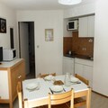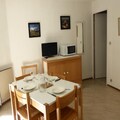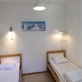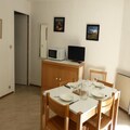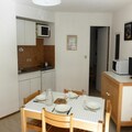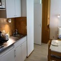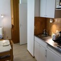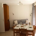 This 27 m² 2-room apartment, located on the 1st floor, accommodates up to 4 people. It features a living room with a pull-out sofa (two single beds) and a television, perfect for relaxing after a day of outdoor activities. The bedroom contains two single beds, and the bathroom is equipped with a bathtub, while the WC is independent. The apartment has an East-facing balcony with mountain views. Please note, pets are not allowed, and the building does not have an elevator.