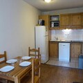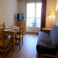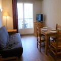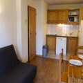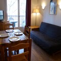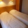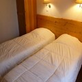 This 31m² two-room apartment in Saint-Gervais sleeps up to four. It has a living room with a sofa bed (sleeps two) and a bedroom with two single beds. A NE-facing balcony offers outdoor space. The residence features a summer heated pool (open mid-June to mid-September 2025, subject to change). Pets are allowed (extra charge). A ski locker is provided.