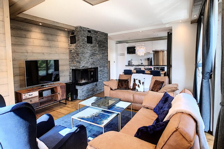 In the charming heart of Les Gets, this elegant apartment invites you to immerse yourself in the serene beauty of the French Alps. With its prime location and breathtaking surroundings, it offers a perfect blend of alpine tradition and modern comfort, making it an idyllic retreat for families and friends seeking a memorable mountain escape. Picture yourself waking up to the crisp mountain air, with the vibrant village life and pristine slopes just steps away. \n\nSpanning 88 m², this thoughtfully designed apartment features three bedrooms, each with its own en-suite bathroom for added privacy and convenience. Two double bedrooms and a cozy cabin room with a bunk bed ensure ample space for up to six guests. The spacious living area, complete with a welcoming fireplace and two balconies, creates a warm and inviting atmosphere for relaxation and socializing. A fully equipped kitchen caters to all your culinary needs, making it easy to prepare delicious meals after a day of adventure. \n\nThe residence also boasts a swimming pool, offering a perfect spot to unwind and rejuvenate after exploring the great outdoors. Whether you’ve spent the day skiing, hiking, or simply strolling through the picturesque village, this tranquil amenity adds an extra layer of indulgence to your stay. \n\nLes Gets is a haven for outdoor enthusiasts, with its renowned ski slopes, scenic hiking trails, and vibrant après-ski culture. From the doorstep of your apartment, you can easily access the best of this alpine gem, creating unforgettable memories in every season. This property promises an unparalleled mountain getaway, combining luxury, comfort, and the timeless allure of the Alps.