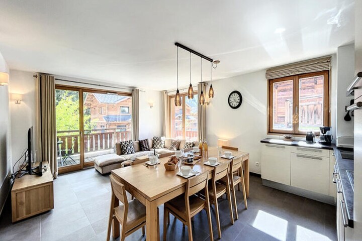 Amidst the enchanting charm of Les Gets, this stunning apartment invites you to immerse yourself in the beauty of the French Alps. Designed to accommodate up to six guests, its 92 m² of modern comfort and style make it the perfect retreat for families or friends seeking a memorable mountain getaway. From the moment you arrive, the breathtaking alpine scenery and vibrant village atmosphere set the tone for an unforgettable holiday. \n\nInside, the apartment boasts three cozy bedrooms, ensuring restful nights after days filled with adventure. The open-plan kitchen is a haven for culinary enthusiasts, equipped with an induction hob, refrigerator, microwave, oven, dishwasher, and all the utensils you need to prepare delicious meals. Relax in the living area with a television or step onto the balcony to soak in the crisp mountain air and stunning views. High-speed Wi-Fi keeps you connected, whether for work or sharing your holiday moments with loved ones. \n\nSituated just steps from the supermarket, ski slopes, and the renowned Restaurant La Fruitière, the location is ideal for exploring all Les Gets has to offer. The nearby 4-season toboggan run, Lac des Ecoles, golf course, and town center provide endless opportunities for fun and relaxation. Whether skiing in winter or hiking in summer, the region’s activities promise excitement for all ages. \n\nThis apartment is more than just a place to stay; it’s your gateway to the magic of the mountains. Experience the perfect blend of adventure, comfort, and alpine charm in Les Gets.