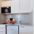 "Glacieres 22", 1-room apartment 25 m2 on 2nd floor, south facing position. Very simple furnishings: living/dining room with 1 pull-out bed (1 pers. 2 x 80 cm, length 190 cm). Exit to the balcony, south facing position. Entrance hall with 1 x 2 bunk beds (80 cm, length 190 cm). Kitchenette (oven, 3 induction hot plates, electric coffee machine). Bath/WC. Small balcony 2 m2, south facing position. View of the countryside and the resort. Facilities: Internet (WiFi, extra). Please note: maximum 1 pet/ dog allowed. Smoke alarm. 73257006156AK
