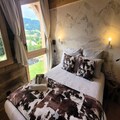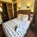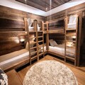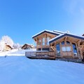 Spanning three levels, the chalet comfortably accommodates up to 14 guests, making it ideal for families or groups. The ground floor features two independent garages, a shared bike storage room, and a dormitory-style bedroom with six bunk beds, perfect for children or teenagers. The first floor boasts a cozy lounge with a fireplace, a fully equipped kitchen with a central island, and a dining area that opens onto a west-facing balcony and southeast terrace. Upstairs, four beautifully appointed double bedrooms, three with en suite bathrooms, provide restful havens after a day of adventure. Modern amenities such as Wi-Fi, smart TVs, underfloor heating, and a Scandinavian bath ensure a comfortable and luxurious stay.