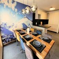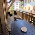Located on the first floor of a 3-star residence, the apartment accommodates up to eight guests with a thoughtful layout designed for comfort and convenience. The en-suite double bedroom features a plush 140cm bed, while a second double bedroom and a bunk room with four single beds ensure ample space for everyone. The living area boasts a fully equipped kitchen, a cozy lounge with a sofa bed and television, and a dining area that opens onto a sheltered terrace—perfect for enjoying mountain views with your morning coffee. Modern amenities such as Wi-Fi, a Nespresso coffee maker, and a raclette grill add to the homely ambiance.