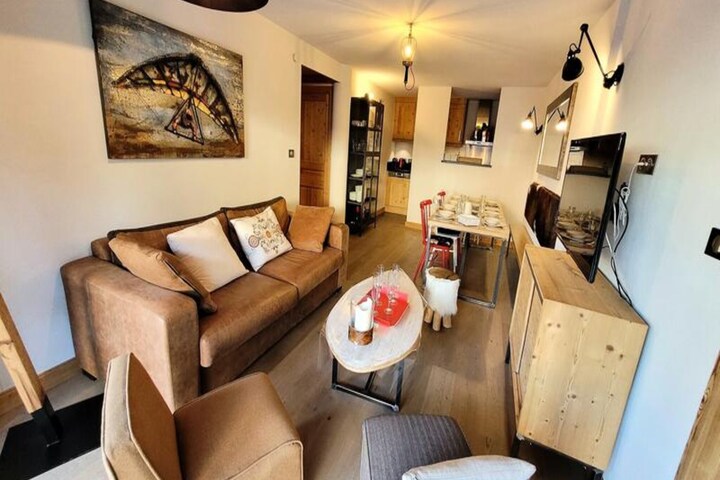In the heart of the charming village of Les Gets, this elegant alpine apartment offers a perfect blend of luxury and convenience. Wake up to the serene beauty of the surrounding mountains, with ski slopes and mountain bike trails just steps away from your door. The residence, accessed via a peaceful pedestrian street, provides a tranquil retreat while keeping you close to the vibrant village atmosphere. Whether you're here to ski, hike, or simply relax, this property promises an unforgettable stay in the French Alps. \n\nThis spacious 83 m² apartment, located on the first floor of a prestigious residence, is designed to accommodate up to eight guests. Its refined decor, warm ambiance, and high-end amenities create a welcoming space for families and groups. The open-plan living area features a fully equipped kitchen, a cozy dining space, and access to a large east-facing terrace where you can enjoy breakfast with panoramic views of the village and surrounding peaks. Three thoughtfully arranged bedrooms provide flexibility and comfort, including a master bedroom with terrace access, a twin room convertible to a double, and a bunk room ideal for children. Modern conveniences such as Wi-Fi, televisions, and underfloor heating ensure a comfortable stay. \n\nStep outside and find everything you need within walking distance. Shops, restaurants, ski schools, and medical facilities are all just moments away, making your holiday stress-free and enjoyable. In winter, the ski slopes beckon for thrilling adventures, while summer transforms the area into a haven for mountain biking and hiking enthusiasts. The private garage and ski locker add practicality to your stay, ensuring your equipment is secure and easily accessible. \n\nChoose this exquisite apartment for your next alpine getaway and experience the perfect balance of luxury, comfort, and proximity to nature. Whether you seek adventure or relaxation, Les Gets offers something for everyone, and this residence places you at the heart of it all.
