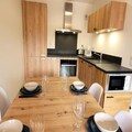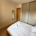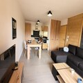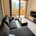 Step inside and discover a thoughtfully designed space that comfortably accommodates up to four guests. The apartment features a cozy living and dining area that opens onto the balcony, a fully equipped kitchen with modern appliances, and a warm, inviting bedroom with a double bed and ample storage. The sleeping alcove with bunk beds is perfect for families or small groups. The sleek bathroom with a walk-in shower and heated towel rail ensures a touch of luxury after a day of exploring the mountains. Additional conveniences include electric shutters, a washing machine, and a ski locker with a boot dryer, ensuring every detail is taken care of for your comfort.