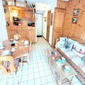 Amid the vibrant charm of Les Gets village, this delightful apartment offers a unique blend of convenience and alpine allure. Situated on Rue du Centre, it places you steps away from bustling shops, cozy cafes, and the lively après-ski scene. As the sun sets, the west-facing balcony becomes your private retreat, where you can soak in views of the surrounding mountains and the village’s twinkling lights. Whether you’re here for a winter ski adventure or a summer escape, this residence ensures you’re at the heart of it all. \n\nSpanning 54 m², the apartment is thoughtfully designed for up to five guests. The bright living room, complete with French doors leading to the balcony, invites relaxation after a day on the slopes. The open-plan kitchen is equipped with everything you need, from a raclette set to a Nespresso coffee maker, making it easy to enjoy hearty meals or a quick breakfast before heading out. Two cozy bedrooms provide restful spaces, including a double room with ample storage and a second room featuring bunk beds and a sofa bed. Modern amenities like Wi-Fi, a TV, and a dishwasher ensure a comfortable stay. \n\nLocated just 50 meters from the ski slopes and shuttle stop, and 250 meters from the renowned ESF ski school, this apartment is perfect for ski enthusiasts and families alike. In summer, explore scenic trails or enjoy the lively village atmosphere. Night bars within the residence add to the vibrant energy, though occasional noise may be expected. \n\nChoose this apartment for its unbeatable location, thoughtful amenities, and the chance to immerse yourself in the dynamic spirit of Les Gets. Whether you’re carving through fresh powder or savoring local specialties, unforgettable memories await in this alpine haven.