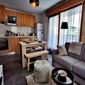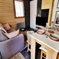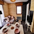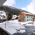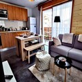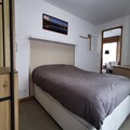 Inside, the 35 m² space has been thoughtfully renovated to blend modern comfort with alpine charm. The apartment features a bright living area with French doors leading to the terrace, a fully equipped kitchenette for preparing hearty meals, and a dining space perfect for sharing stories of the day’s adventures. The double bedroom, complete with storage and its own balcony access, offers a restful haven, while the sleeping alcove with bunk beds is a fun and practical solution for families. A spacious bathroom with a heated towel rail adds a touch of luxury to your stay.