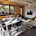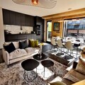 Spanning 100m², this second-floor apartment combines elegance and comfort. The spacious living area features two plush sofas and opens onto a fully equipped kitchen, ideal for preparing hearty meals after a day on the slopes. With three beautifully appointed double bedrooms, including one en-suite, and a cozy sleeping alcove with bunk beds, the property comfortably accommodates up to eight guests. Modern amenities such as Wi-Fi, a high-quality Bluetooth stereo system, and smart TVs ensure entertainment and convenience throughout your stay. The large east/south/west-facing terrace offers breathtaking views of the snow-covered slopes and the lively resort center, making it a perfect spot to unwind.