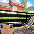 Step inside and discover a thoughtfully designed space that accommodates up to six guests. The apartment features two elegant double bedrooms, one with an en-suite bathroom, and a charming sleeping alcove with a high single bed and sofa bed. The open-plan living area invites you to unwind, with its bright ambiance and access to both a balcony and a terrace, perfect for soaking in the mountain air. A fully equipped kitchen, complete with a Nespresso machine, raclette set, and modern appliances, ensures you can enjoy home-cooked meals after a day on the slopes. Additional amenities like Wi-Fi, two televisions, a washer-dryer, and even a mountain-friendly baby carrier cater to every need.