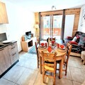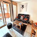 Step inside to discover a thoughtfully designed space that combines comfort and functionality. The bright living room, with its open-plan kitchen, creates a welcoming atmosphere for relaxing evenings after a day on the slopes. The en-suite master bedroom offers a private sanctuary with its own shower room and TV, while the cozy cabin with bunk beds is perfect for children or additional guests. Modern amenities such as Wi-Fi, two TVs, and a fully equipped kitchen—including a Nespresso coffee maker and raclette grill—ensure a seamless stay. The private balcony-terrace adds a touch of outdoor charm, ideal for unwinding with a glass of wine as the sun sets.