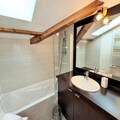 High above the picturesque French Alps, this luxurious top-floor apartment offers a perfect blend of comfort and elegance, promising an unforgettable mountain retreat. Bathed in sunlight thanks to its southwest exposure, the residence boasts breathtaking views of the surrounding peaks from its private balcony, creating the ideal setting for relaxation after a day of adventure. Whether you're here for winter sports or summer hikes, the serene atmosphere and refined amenities will make every moment special. \n\nInside, the apartment is thoughtfully designed to accommodate up to eight guests, making it ideal for families or groups of friends. The spacious living room, complete with a cozy sofa, TV, and dining area, opens onto a fully equipped kitchen featuring modern appliances such as a dishwasher, Senseo coffee machine, and raclette set for authentic alpine evenings. Three bedrooms offer flexible sleeping arrangements, including an en-suite double bedroom and two rooms with single beds that can be joined upon request. Two bathrooms, one with a bathtub and heated towel rail, ensure comfort and convenience for all guests. \n\nThe residence itself is a haven of relaxation, featuring heated indoor and outdoor pools and a spa area. A ski locker, locked garage, and covered parking space add practicality to your stay. Located just 450 meters from the nearest ski slopes and 400 meters from the village center, you'll find everything you need within easy reach, including shops, restaurants, and the ESF ski school. In summer, explore scenic trails or unwind in the wellness area after a day of discovery. \n\nWith linens, towels, and end-of-stay cleaning included, this property ensures a carefree holiday experience. Whether you're seeking thrilling alpine adventures or tranquil moments surrounded by nature, this residence is your gateway to the magic of the French Alps.