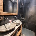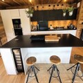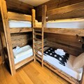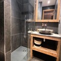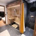 Spanning four levels, the chalet accommodates 12 to 14 guests in utmost comfort. The first level features three beautifully designed bedrooms, including a bunk room perfect for children, all with en-suite facilities and access to a sun-drenched terrace. The second level boasts a grand living area with a fully equipped kitchen, opening onto two south-facing terraces. Here, you’ll find an outdoor dining space and a private jacuzzi to unwind after a day on the slopes. The top floor houses a stunning master suite with cathedral windows offering sweeping views, while the lower level includes a cozy cabin bedroom, a sauna with a shower, and a laundry area.