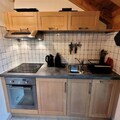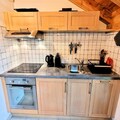 Thoughtfully designed to accommodate up to four guests, the apartment features a warm and inviting living space with a sitting area and a fully equipped kitchen. The double bedroom offers a restful retreat with ample storage, while the sleeping alcove with a bunk bed is perfect for children or additional guests. The bathroom, complete with a bathtub and towel dryer, ensures comfort after a day of exploring. Modern amenities such as Wi-Fi, a flat-screen TV, and a washer-dryer add convenience, while the provided raclette and fondue sets invite you to savor local culinary traditions.