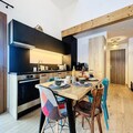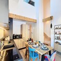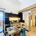Designed with comfort and versatility in mind, the apartment features two cozy bedrooms and two modern bathrooms, comfortably accommodating up to five guests. The mezzanine, a flexible space, is perfect for two children or an additional couple, making it ideal for families or groups of friends. The inviting living room, bathed in natural light, seamlessly connects to a fully equipped kitchen, where you can prepare hearty meals after a day exploring the mountains. Step out onto the private balcony to soak in the breathtaking views of the surrounding peaks and let the crisp alpine air rejuvenate your spirit.
