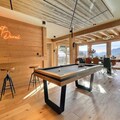 After a day on the slopes or hiking trails, unwind in the sauna or soak in the jacuzzi while taking in the snow-capped vistas. The chalet also features a pool table that converts to a ping-pong table, ensuring fun for all ages. With amenities like a private garage, laundry facilities, and concierge services offering everything from ski passes to private chefs, every detail has been designed to enhance your stay.