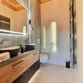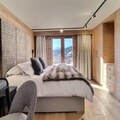 Step inside to discover a haven of comfort and elegance. The chalet accommodates up to 12 guests across its thoughtfully designed spaces. The ground floor welcomes you with a spacious ski room and a luxurious master suite featuring a king-size bed, private balcony, and an en-suite bathroom. The main level boasts an expansive living area with floor-to-ceiling windows, a cozy gas fireplace, and a home theater for movie nights. A fully equipped kitchen opens onto a terrace with a barbecue, perfect for enjoying meals with a view. The garden level offers three en-suite bedrooms, a dormitory-style room for children, and a family bathroom, all with access to the terrace and outdoor jacuzzi.