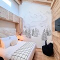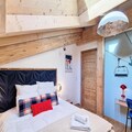 In the heart of the charming Les Gets ski resort, this beautifully designed 100 m² apartment offers a warm and inviting retreat for your mountain holiday. Surrounded by the breathtaking landscapes of the French Alps, this property combines modern comfort with alpine charm, creating the perfect setting for unforgettable family moments. Whether you're here to carve through pristine slopes or simply relax in a serene environment, this home is your gateway to a magical winter or summer escape. \n\nThe apartment comfortably accommodates up to 8 guests across 4 thoughtfully arranged bedrooms. Two double bedrooms feature en-suite bathrooms for added privacy, while a third double bedroom and a cozy cabin room with bunk beds share a spacious shower room. Each double bedroom is equipped with its own television, and all bathrooms are fitted with hairdryers for your convenience. The open-plan kitchen is fully equipped, boasting a refrigerator, dishwasher, microwave, raclette grill, and fondue set—perfect for preparing hearty alpine meals. Additional amenities include a washing machine, two ski storage spaces, and a cellar, ensuring a hassle-free stay. The property also offers a two-space underground garage and complimentary Wi-Fi.\n\nIdeally located just 50 meters from the market square and less than 200 meters from the supermarket and local shops, this apartment places you at the heart of Les Gets' vibrant village life. The ski lifts are an easy 8-minute walk away, while a nearby shuttle stop provides convenient access to Alta Lumina, a magical light and sound experience. Whether you're exploring the slopes, strolling through the village, or enjoying the region's culinary delights, everything you need is within reach.\n\nChoose this delightful apartment for your next alpine getaway and create cherished memories in the enchanting surroundings of Les Gets. With its blend of comfort, style, and unbeatable location, it's the perfect home base for your mountain adventures.