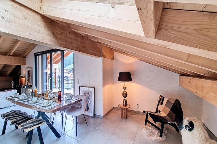 In the heart of the picturesque village of Les Gets, this stunning 90m² apartment offers a harmonious blend of modern elegance and alpine charm, creating the perfect retreat for families and groups of up to eight people. Imagine waking up to the crisp mountain air, surrounded by breathtaking views of the French Alps, and stepping into a world of relaxation and adventure. Whether you’re here for winter sports or summer hikes, this property promises an unforgettable escape. \n\nThe apartment boasts four beautifully designed bedrooms, including one with a cozy bunk bed and three with plush double beds, ensuring restful nights for all. With three bathrooms—two featuring showers and one with a luxurious bathtub—you’ll find ample space for unwinding after a day of exploring. The open-plan American-style kitchen is fully equipped with modern appliances, including a refrigerator, freezer, dishwasher, oven, microwave, coffee maker, and kettle, making it easy to prepare hearty meals to enjoy in the inviting dining area. Wi-Fi and private parking add to the convenience, while the elegant furnishings create a warm and welcoming atmosphere. \n\nJust 280 meters from Carrefour Montagne and 550 meters from the Chavannes gondola, the apartment’s prime location ensures easy access to shops, ski lifts, and public transportation. Les Gets itself is a vibrant village with a rich alpine heritage, offering a variety of restaurants, boutiques, and activities for every season. In winter, the slopes beckon with pristine snow, while summer transforms the region into a haven for hikers and cyclists. \n\nWhether you’re seeking thrilling adventures or peaceful moments surrounded by nature, this apartment is your gateway to the best of Les Gets. With its thoughtful amenities and unbeatable location, it’s the ideal choice for creating cherished memories in the heart of the Alps.