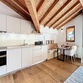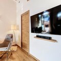 Inside, you'll find a thoughtfully designed space featuring a comfortable double bedroom, a bright living area with an open-plan kitchen, and all the modern amenities you need for a relaxing holiday. The fully equipped American-style kitchen with an induction hob makes meal preparation a breeze, while conveniences such as Wi-Fi, a television, a washing machine, a dryer, and heat pump heating add to your comfort. The apartment also includes garden furniture and a private garage, ensuring both practicality and ease during your stay.