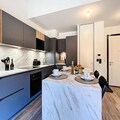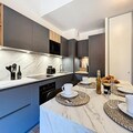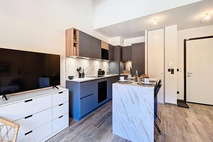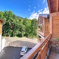 The apartment comfortably accommodates up to four guests, featuring a serene bedroom with a plush double bed and a convenient double sofa bed in the living room. The fully equipped modern kitchen invites you to prepare delicious meals, while the stylish bathroom with a walk-in shower ensures a refreshing start or end to your day. The living area, bathed in natural light, opens onto a balcony where you can unwind and soak in the panoramic mountain views. Additional amenities such as a ski locker and private parking make your stay seamless and stress-free.
