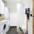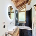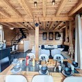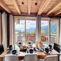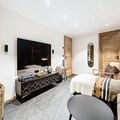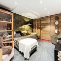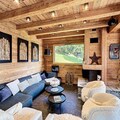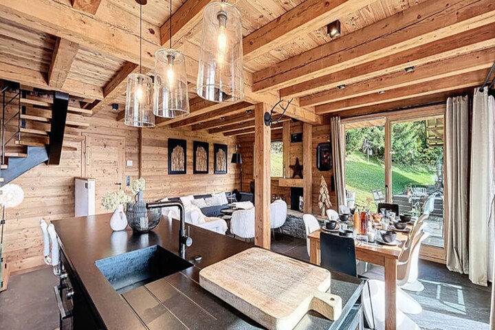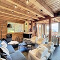 The heart of the chalet is its inviting living area, where refined alpine décor blends natural wood, soft fabrics, and contemporary accents. Gather around the fireplace after a day of skiing, or prepare a feast in the modern open-plan kitchen, complete with high-end appliances and a spacious dining table. Additional amenities include a cozy TV room, a ski room with boot warmers, a fully equipped laundry room, and high-speed internet to keep you connected.