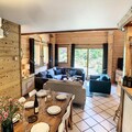 This spacious 100 m² apartment in Les Gets offers an exceptional stay for up to 10 people, featuring 5 rooms and 4 bedrooms. It includes a large living room with a fireplace, a terrace with mountain views, and a fully equipped open kitchen. The 4 bedrooms are elegantly designed, each with its own bathroom. Double beds can be converted into singles for flexibility, and bedrooms 3 and 4 also have an additional single bed. The apartment also offers private parking and Wi-Fi.