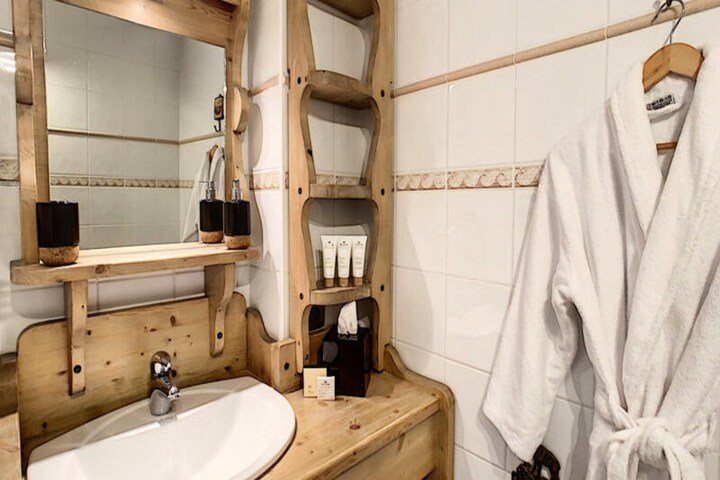 Situated directly opposite the slopes, this property provides easy access to skiing and the surrounding mountain activities. The serene location allows guests to enjoy peaceful moments on the terrace or indulge in the wellness area, which includes a jacuzzi and sauna for ultimate relaxation after a day on the slopes.