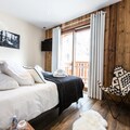 This luxury chalet offers an exceptional 500m² space spread across four levels, providing accommodations for up to 14 guests. The chalet features 7 spacious bedrooms, each with an en-suite bathroom, television, and dressing room. The 40m² master suite includes a king-size bed, an adjoining bathroom with an Italian shower and phototherapy bathtub, and a television. The first floor boasts a large living area, including a fully equipped kitchen, dining room, and a cozy living room with a fireplace. A panoramic balcony provides stunning views of the Perrières ski slopes.