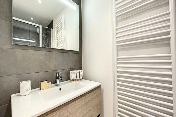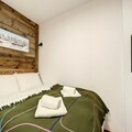 Property, along with its elegant design, offers a well-appointed vacation home perfect for a small family or group. It features two comfortable bedrooms: one with a 160 cm double bed and a private shower room, and a second with a 140 cm double bed. The living space includes a cozy TV lounge with direct access to a terrace, ideal for relaxation. The apartment can accommodate up to 4 people, making it an ideal retreat for a peaceful stay. In addition to the spacious living area, the residence offers a large closed garage, equipped with an electrical outlet for convenient charging of electric vehicles or bicycles. Guests also benefit from a private ski locker within the residence, ensuring secure storage of gear. Though pets are not mentioned, guests can enjoy the exclusive access to the spa, "Les Sources du Chéry," a paid service that adds extra relaxation to their stay.