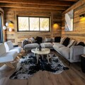 The chalet features a fully equipped kitchen designed for large groups, with everything needed for preparing meals. Guests will find modern appliances, including an oven, stove, refrigerator, and dishwasher. The spacious dining area, adjacent to the living room, offers ample seating for large gatherings, while the lounge area provides a cozy space for unwinding. Other amenities include a ski room for storing equipment and two garage parking spaces with electric vehicle charging capabilities. With its combination of modern conveniences and traditional Alpine charm, this chalet is an ideal retreat for those seeking both relaxation and adventure in the French Alps.