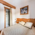 Nestled in the family-friendly resort of Carroz d'Arraches, this charming residence offers cozy chalets with a mountain ambiance, perfect for a rejuvenating getaway. Your vacation rental includes a living room with a sofa bed, an open kitchen, two bedrooms, two bathrooms, a separate toilet, and a private balcony. The apartment, located on the second floor, spans 40 m² and is ideal for families, with one bedroom featuring a double bed and another with two single beds. The living space is designed for comfort, with a dining table and wooden bench for family meals.