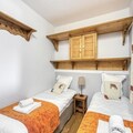 This charming holiday home is located in a serene alpine setting, offering a cozy atmosphere for a relaxing getaway. It features two bedrooms, one with a double bed and the other with two single beds, as well as a sofa bed in the living room to accommodate extra guests. The property is pet-friendly, with prior arrangements for your furry companions, and offers a range of amenities including free Wi-Fi, television, and a separate toilet. Baby kits are available upon request, ensuring a comfortable stay for families.