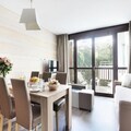 This comfortable apartment is perfect for families or groups, accommodating up to six people with a living room featuring a pull-out sofa bed for two, a bedroom with a double bed, and a second bedroom with two single beds. The property is pet-friendly (with an additional fee) and includes free Wi-Fi. Bed linen is provided, and towels are available for an extra charge. A deposit is required, and a baby kit can be requested for an additional fee. End-of-stay cleaning is included, except for the kitchen area and dishes.