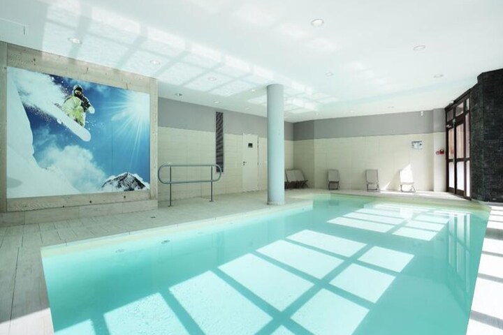 The chalet features a fully equipped kitchen, perfect for preparing meals after a day of outdoor activities. The bathroom, along with an additional shower room and two toilets, ensures convenience for all guests. For relaxation, the property offers a covered and heated swimming pool, sauna (with an additional fee), and a solarium. End-of-stay cleaning is included, except for the kitchen area and dishes, making for a hassle-free departure.