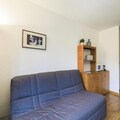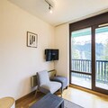 The residence features a cozy and well-designed layout, perfect for families or small groups. With a living room that includes a sofa bed, a comfortable armchair, and a dining area for five, you’ll feel right at home. The open kitchen is fully equipped for preparing delicious meals, while the private balcony offers a tranquil space to enjoy the crisp mountain air. The bedroom, complete with a double bed and bunk beds, ensures restful nights after a day of adventure. Modern amenities such as Wi-Fi (available for an additional fee) and pet-friendly options add to the convenience of your stay.