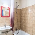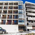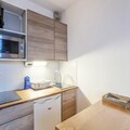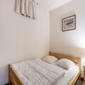 The apartment is thoughtfully designed to maximize comfort and functionality within its 26 m² space. It features a cozy living room with a two-seater sofa, a dining area with seating for five, and a well-equipped kitchen open to the living space. The sleeping arrangements include an enclosed alcove with a double bed and another alcove with bunk beds, making it ideal for families or small groups. The bathroom includes a bathtub for unwinding after a day of exploration, and a separate toilet adds convenience. Modern amenities such as Wi-Fi (available for an additional fee) ensure you stay connected while enjoying your mountain getaway.