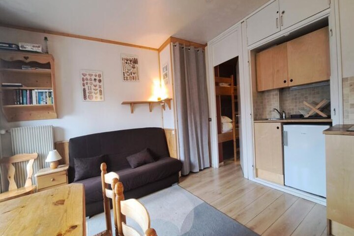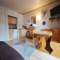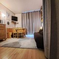 Compact yet thoughtfully designed, this 23 m² apartment is ideal for couples or small families. The living room features a comfortable sofa bed for two, while the enclosed sleeping alcove with bunk beds is perfect for children. A fully equipped kitchen and a cozy dining area make it easy to enjoy meals together after a day of outdoor activities. The bathroom includes a bathtub for a relaxing soak, and essential amenities like bed linen and towels are provided during the winter season.