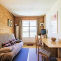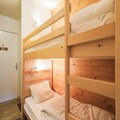 The residence features 12 thoughtfully designed apartments, including your cozy 27 m² vacation rental. Located on the first floor, the apartment is perfect for up to four guests, with a comfortable living room that includes a sofa bed for two, and a sleeping alcove with bunk beds. The open-plan kitchen is equipped with all essentials, making it easy to prepare meals after a day of adventure. Relax in the inviting living area or step out onto the balcony to soak in the crisp mountain air and stunning scenery. Modern amenities like Wi-Fi (available for an additional charge) ensure a comfortable stay, while bed linens and towels are included during the winter season.