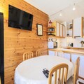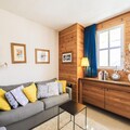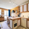 The apartment, located on the first floor, spans 55 m² and is thoughtfully designed to accommodate up to six guests. The living room features a cozy sofa bed, armchairs, a television, and a Blu-ray DVD player, making it ideal for unwinding after a day on the slopes. The open kitchen is fully equipped with modern appliances, including an oven, microwave, dishwasher, and coffee maker, ensuring you have everything you need to prepare delicious meals. The bedroom boasts a comfortable double bed, a television, and ample storage space, while the enclosed sleeping alcove features bunk beds perfect for children. A private sauna adds a touch of luxury, allowing you to relax and rejuvenate in the privacy of your own space.